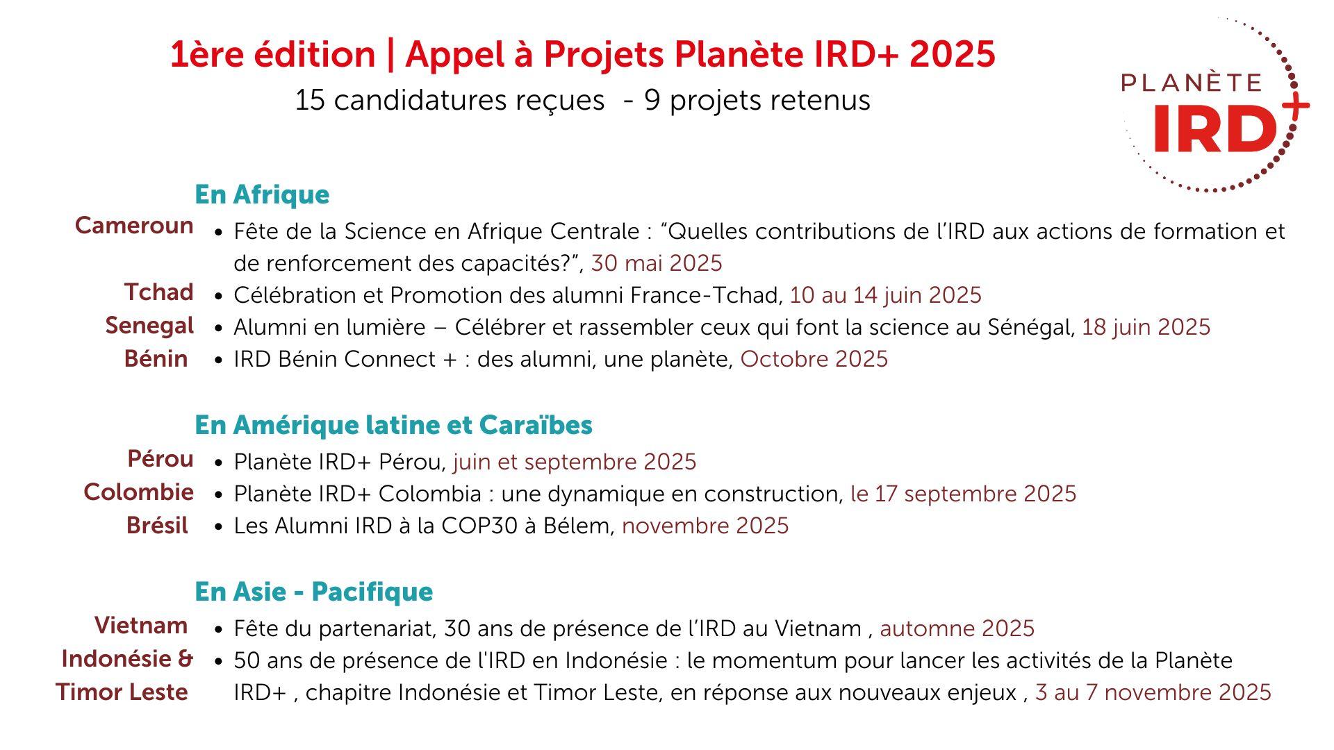 Résultats de l'Appel à Projets Planète IRD+ 2025
